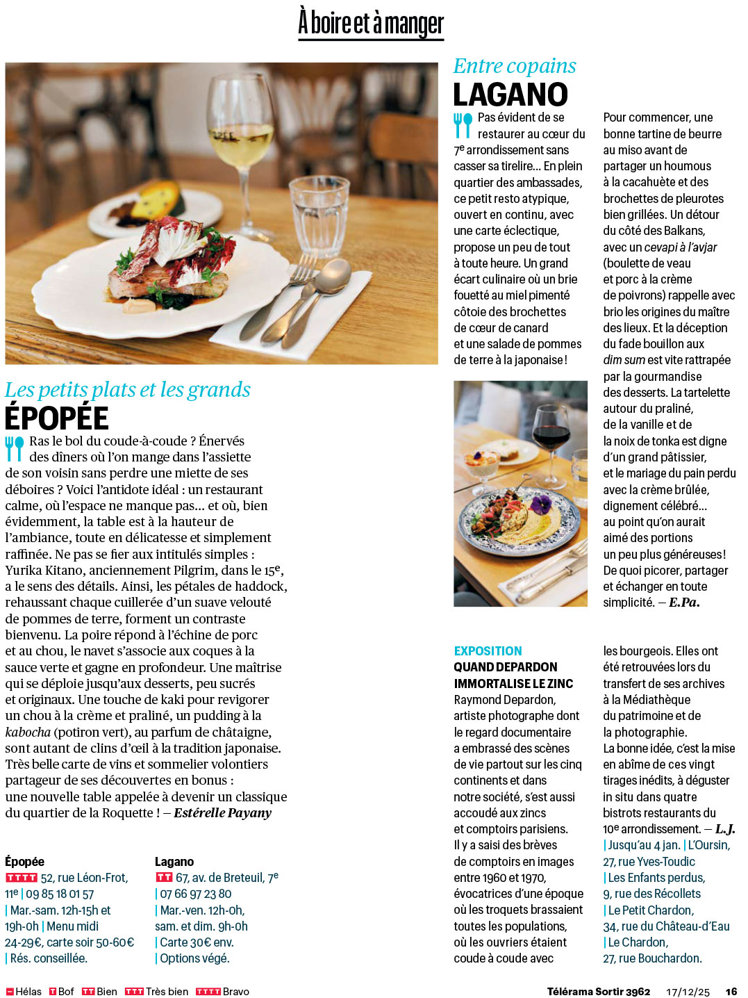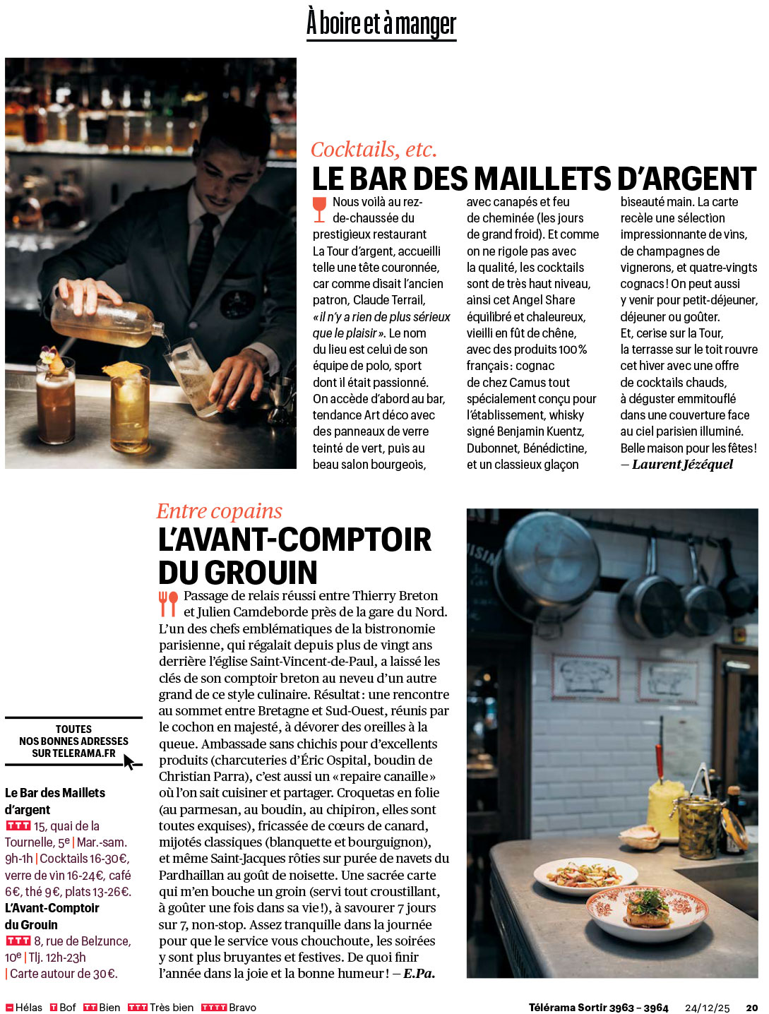 Pendant le mois de décembre, j’ai visité pour Télérama Sortir plusieurs restaurants et bars parisiens et arpenté certains quartiers pour de belles balades.